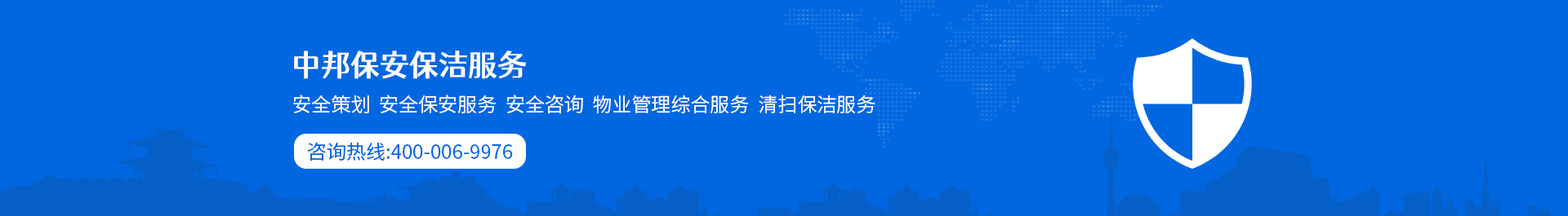 中邦服務簡介 安徽中邦保安服務有限公司總公司成立于2019年。公司 成立以來,始終以“文明值勤、優良服務、客戶至上、安全為先” 為宗旨,以保一方平安為已任,面向社會各界等提供有償保安護 衛、技術防范、保安培訓,是一家專業化保安服務公司。目前, 公司下為200多家客戶單位提供周到安全的保安服務,遍布全省 及周邊地區,現有各類專業人員和保安員2000余名。 中邦服務宗旨 安徽中邦保安服務有限公司是為適...